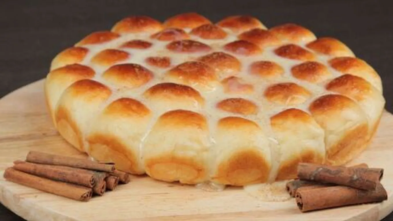 - نُرتب كرات العجين المحشية بالجبن على شكل خلية نحل في الصينية، مع مراعاة عدم ترك فراغات بين كل كرة وأخرى.