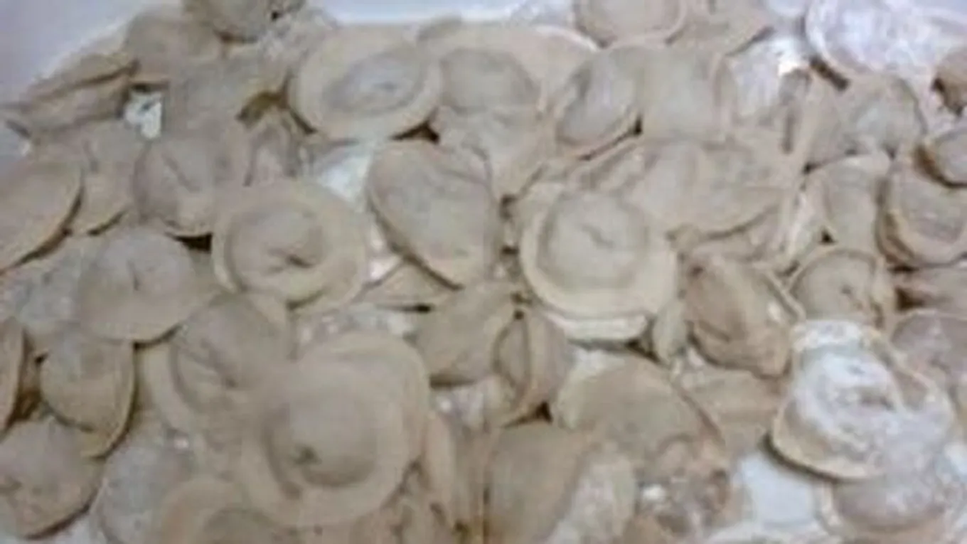 - قسّمي العجينة إلى قسمين وافردي القسم الأول بشكل عجينة رقيقة جداً، ثمّ قطعيها إلى دوائر صغيرة باستخدام قالب أو فنجان شاي، وخذي مقداراً صغيراً من الحشوة وضعيها في كل دائرة وأقفليها؛ بحيث تحصلين على شكل هلال، وشدّي طرفي العجينة إلى الخلف حتى تحصلي على شكل صدفة صغيرة، وشكّلي جميع العجينة ويفضّل أن تضعيها في صينيّة مدهونة بالقليل من الزيت أو رشها بالقليل من الطحين حتى لا تلتصق.