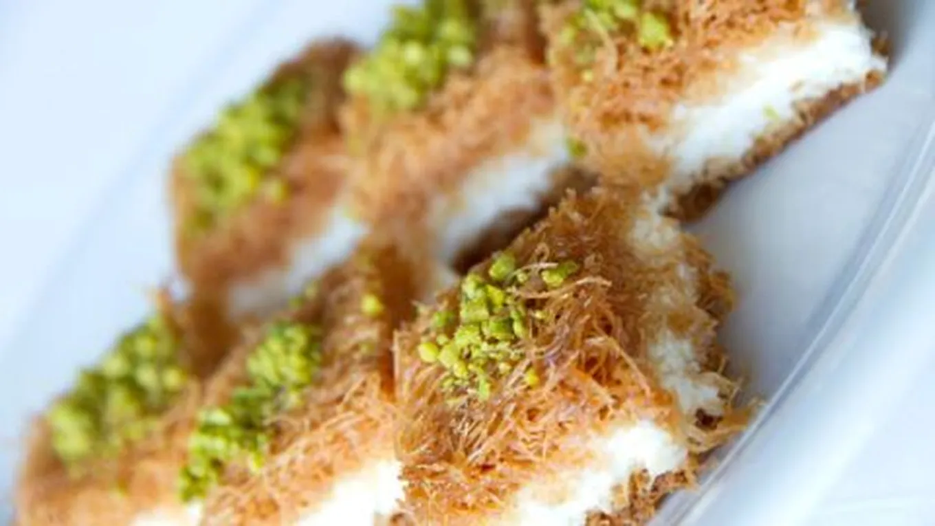 - نضع قطعة من الكنافة في طبق مناسب للتقديم.