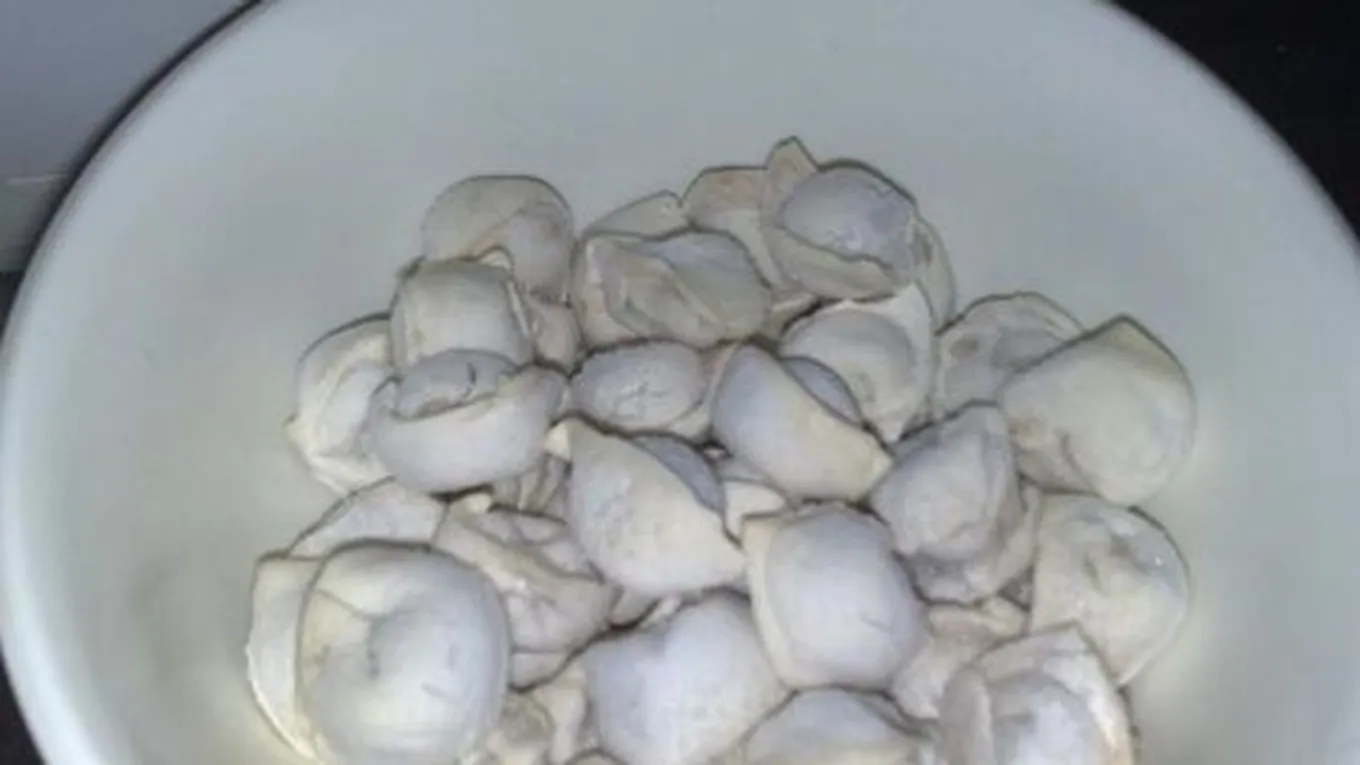 - نقطع عجينة إلى كريات، ثمّ نفردها باستخدام الأصبع ونضع فيها الحشوة.