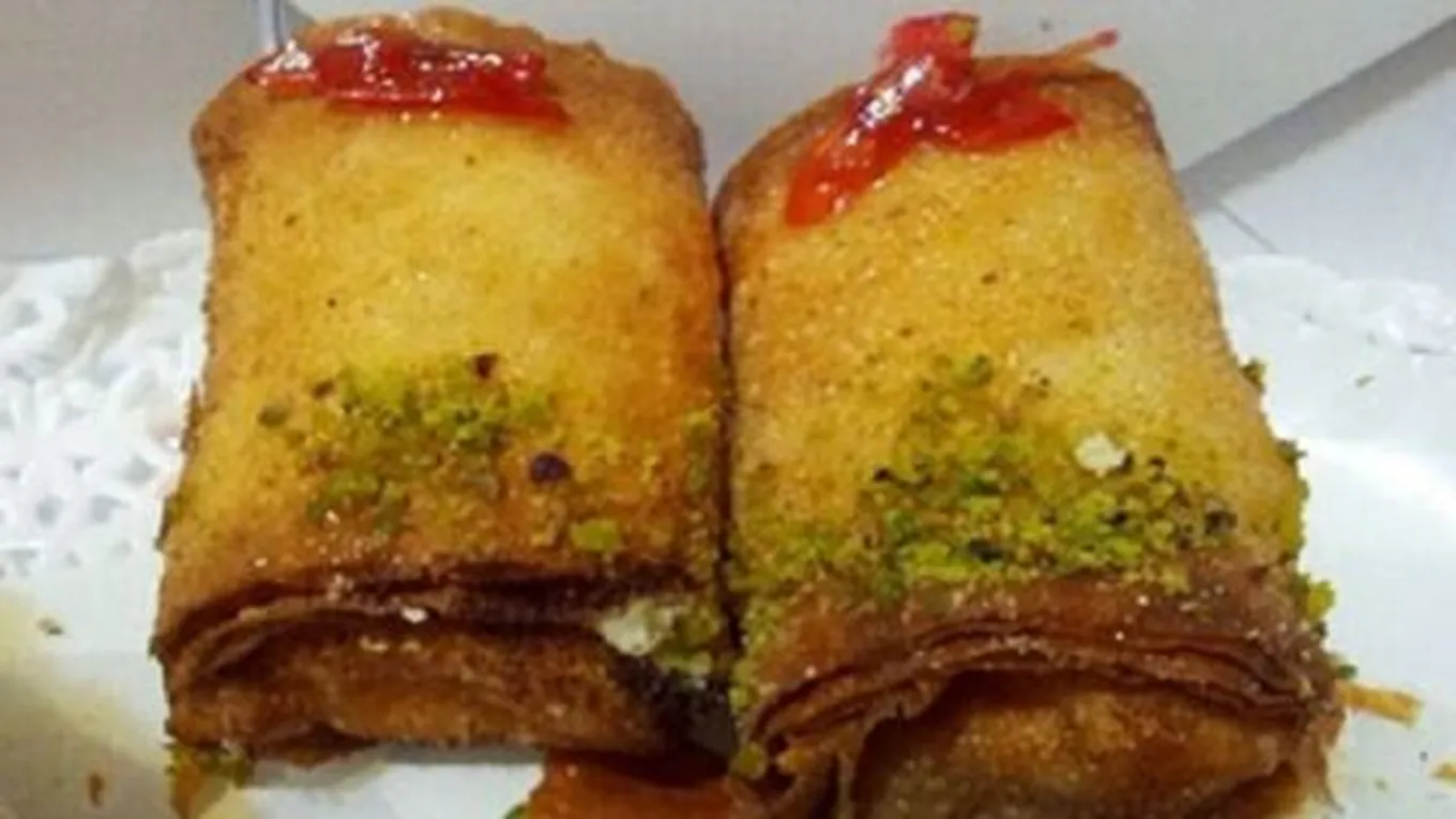 - نقوم بعد ذلك بوضع زنود الست في صحن التقديم ونزينها بالفستق الحلبي وتقدم.