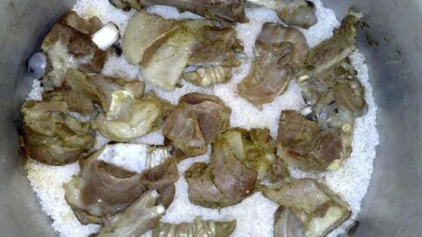 - ضعي الملح الخشن في قدر واسع، ثمّ صفّي قطع الدجاج عليه بهدوء، وارفعيه على النار.