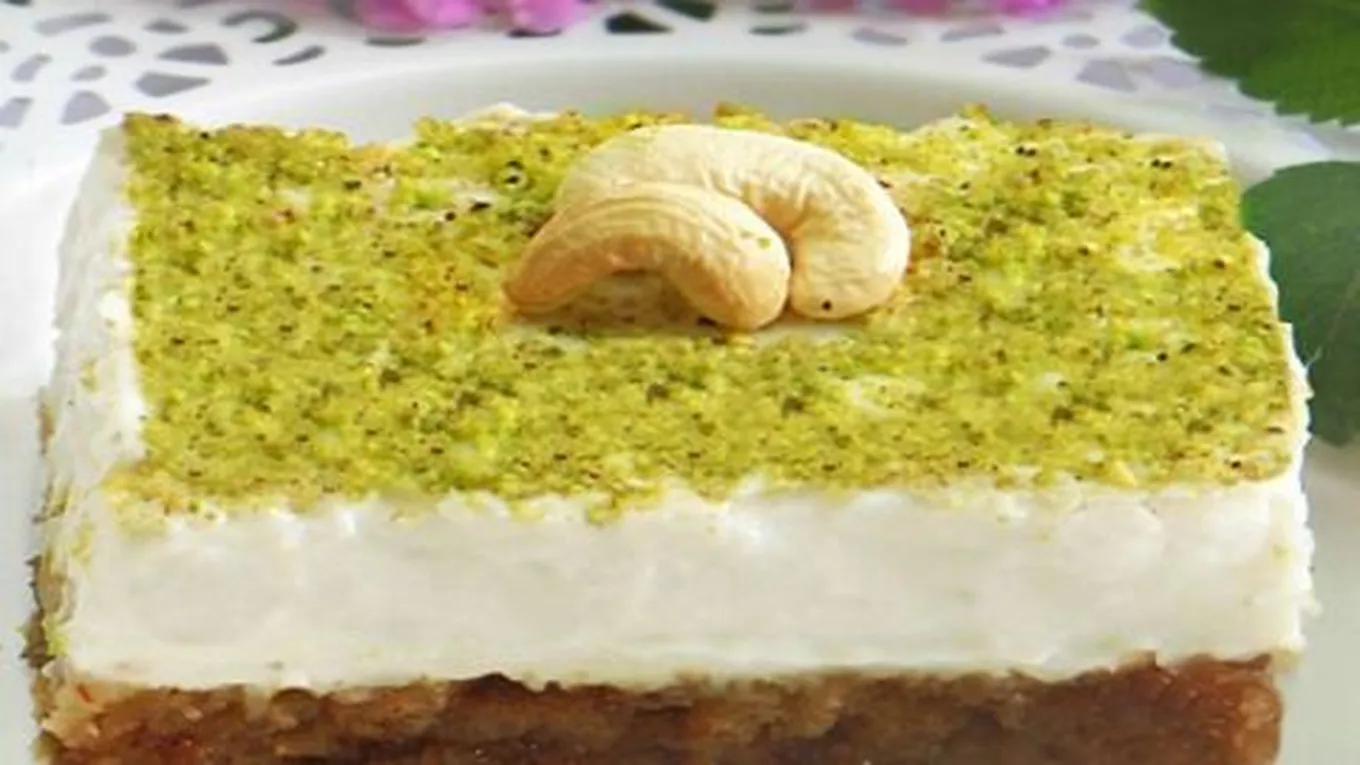 - تزيين الطبق بالفستق الحلبي المطحون، وإدخاله إلى الثلاجة وتركه مدّةً لا تقلّ عن ساعة، حتّى يبرد تماماً.