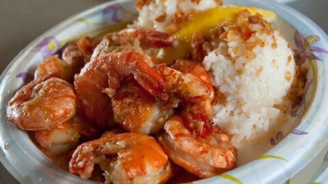 - سكب الأرز في طبق واسع وتزيينه بحشوة الروبيان.