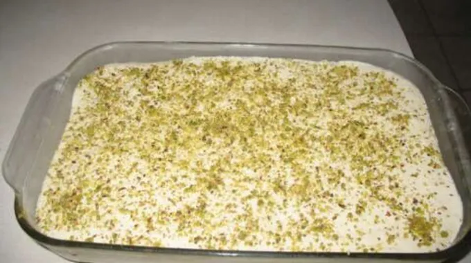 - أضف الفستق الحلبي لما تبقى من مزيج ليالي لبنان، ثمّ وزعه على طبق التقديم.