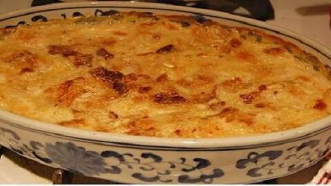 - أخرجي الوعاء من الفُرن، ووضعي فوقه الكريمة اللبّاني ثُم أدخليه للفُرن ليكتسب اللون الذهبي.