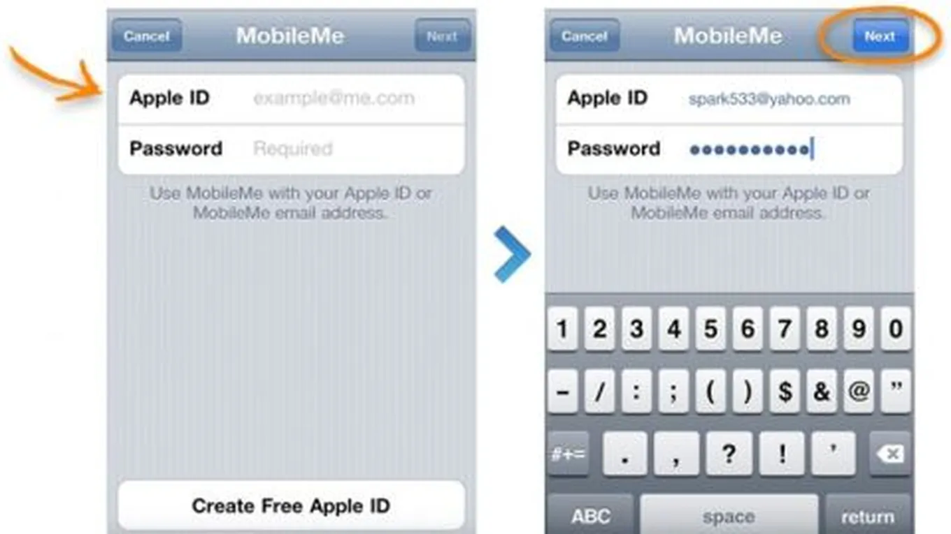 يمكن إنشاء حساب أبل (Apple) جديد على جهاز الآيفون (iPhone)، أو الآيباد (iPad) من خلال اتباع الخطوات التالية:[1]