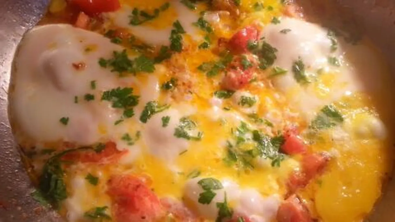 - ثم نضيف البيض، وتترك على النار حتى الاستواء.