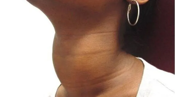 - نقص عنصر اليود في الدم ممّا يؤدّي إلى تضخّم الغدة الدرقية، وغالباً ما يكون هذا السبب الرئيسي عند الشعوب التي لا تتناول السمك.