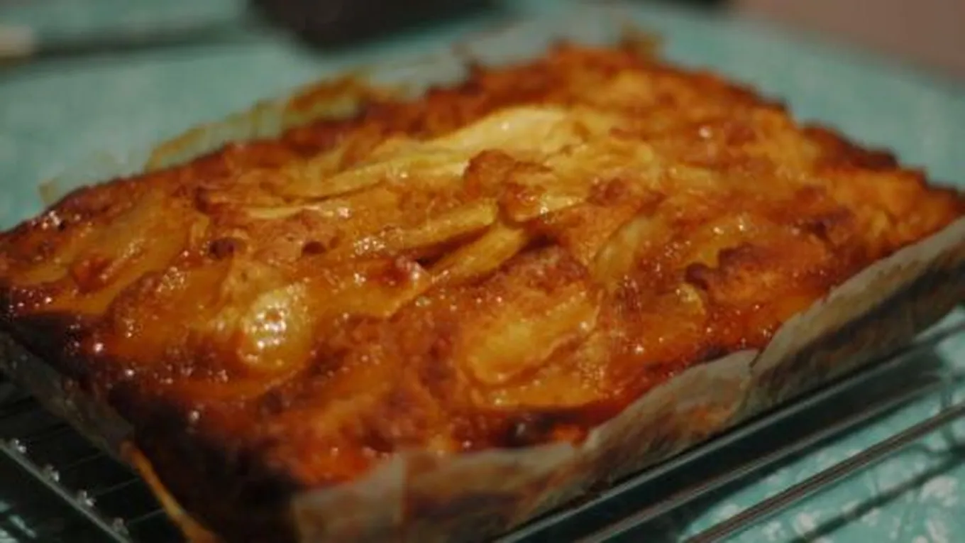 - نحضر القالب و ندهنه بالقليل من الزبدة و من ثم نرشه بالقليل من الدقيق ، من ثم نضع الخليط بالقالبر و نضعه بالفرن المحمى مسبقاً و نضع القالب بالفرن لمدة نصف ساعة على نار هادئة ختى ينضج بالكامل.