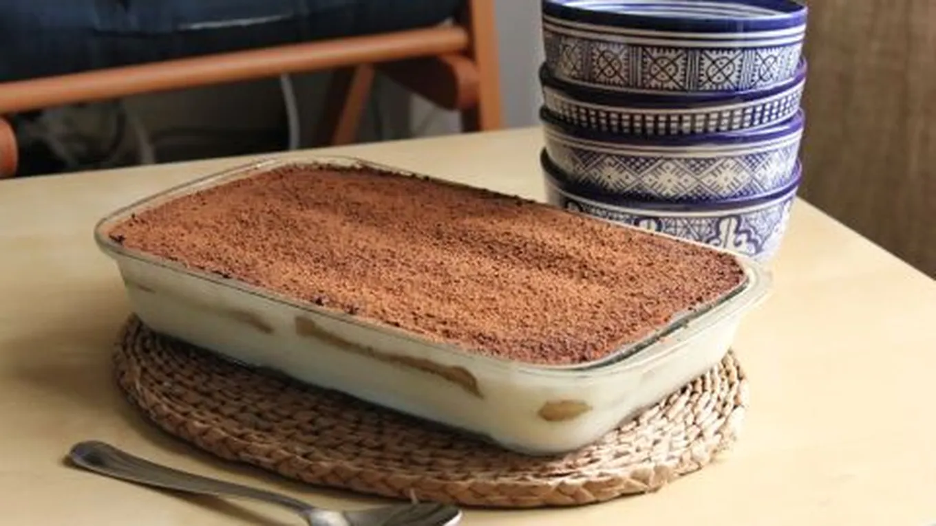 - احرصي على أن تكون آخر طبقة هي كريمة الماسكاربوني وانثري عليها الكاكاو بواسطة منخلٍ صغير.