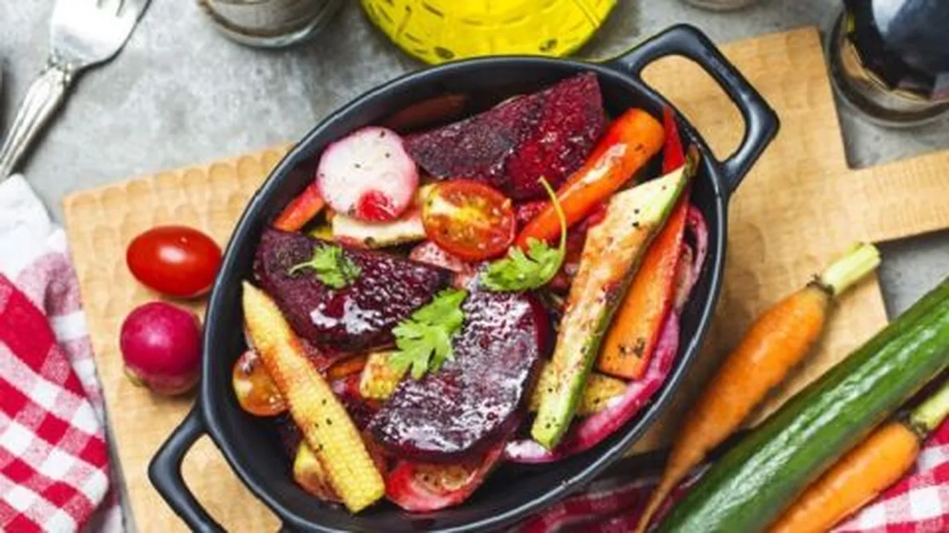- وضع الطبق في الفرن لمدة نصف ساعة حتى تنصج الخضروات.