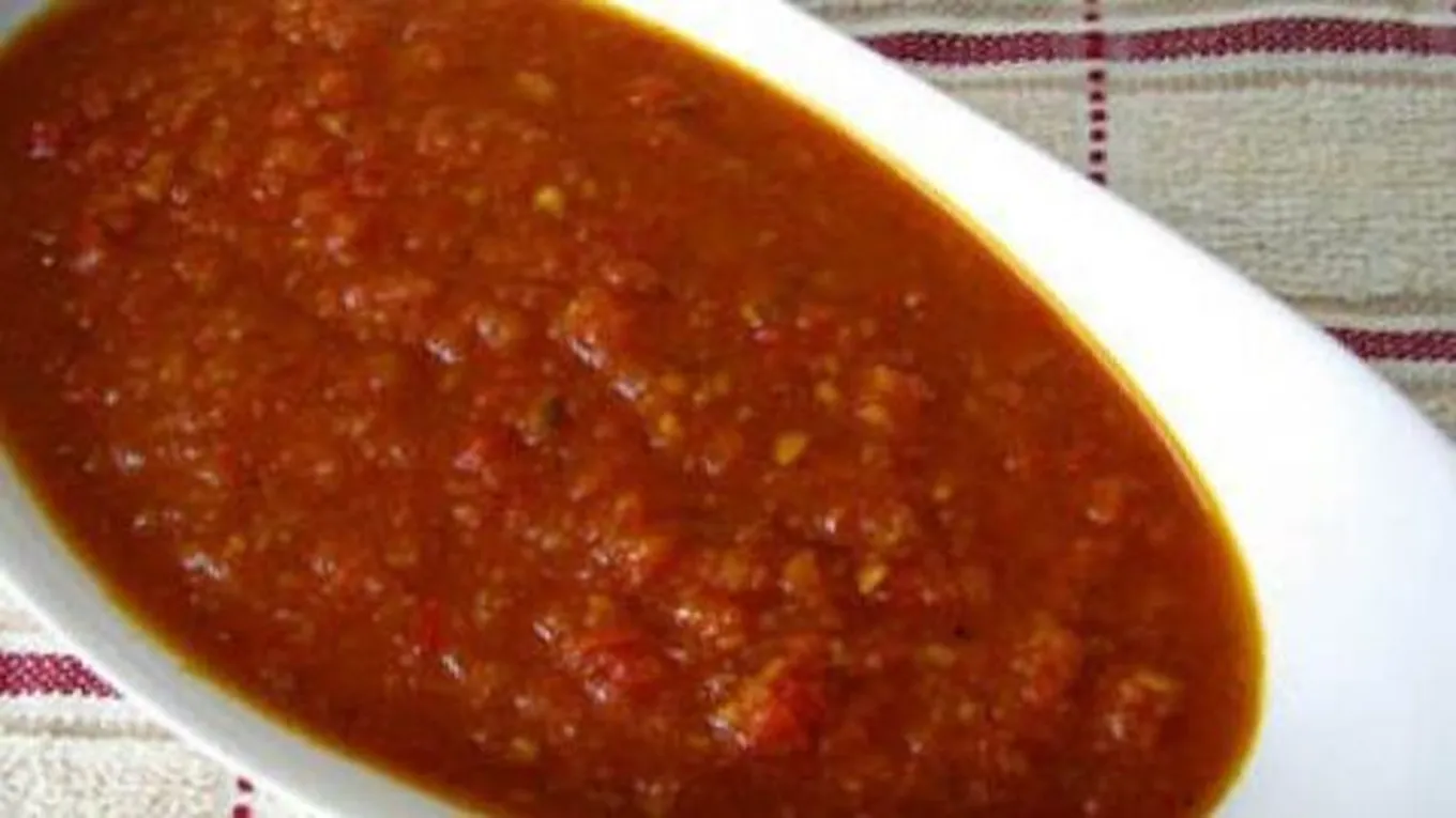 - نضع في الخلاط الكهربائي البندورة، ورب البندورة، والنعناع، والفلفل الحار، والثوم المهروس ونخلط جيداً.