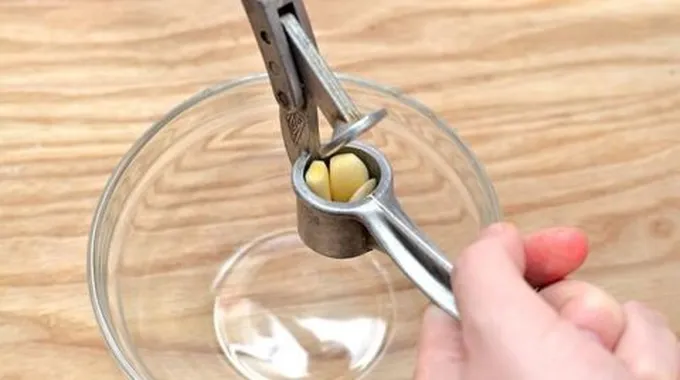 - يُعصر الثوم، ويُستخرج منه العصير. ويُفترض أن يعطي هذا كميةً تقدّر بملعقة واحدة كبيرة من عصير الثوم.