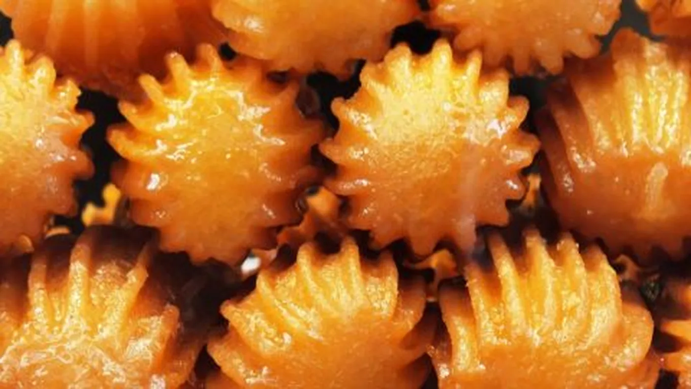 - ترك الزيت إلى أن يسخن ثمّ عمل خطوط صغيرة من العجين بكيس الحلواني في الزيت الساخن.