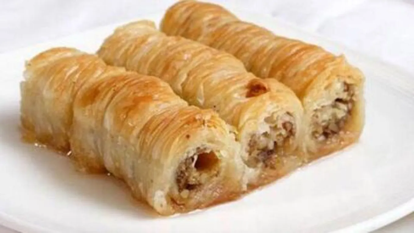- نخلط القرفة، والسكر، والجوز، والفستق، والسميد، والهيل معاً، ونحدث فجوة في منتصف كلّ قطعة من العجين، ونضع فيها كميّة مناسبة من الحشوة، ونبرمها ثمّ نضعها في الصينيّة الخاصة بالفرن.