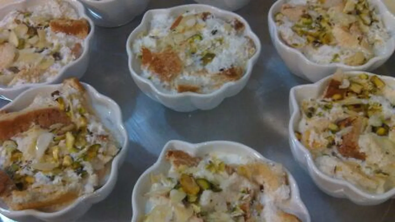 - نُزيّن أم علي بالفستق واللوز والزبيب والجوز وجوز الهند المحمّص ونقدّمها ساخنةً، ومن الممكن تحضير أم علي في أطباق فرديّة.