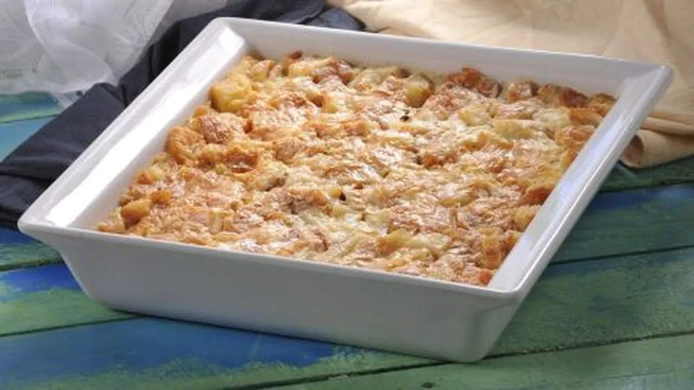 - نسكب المزيج فوق التوتست، ومن ثم ندخل الصينية في الفرن على درجة حرارة 200 درجة مئوية، لمدة عشرين دقيقة، وعندما يتغير وجه الصينية، ويصبح لونه مائلاً إلى الذهبي، نخرج الصينية من الفرن، ونتركها لبعض الوقت حتى تبرد.