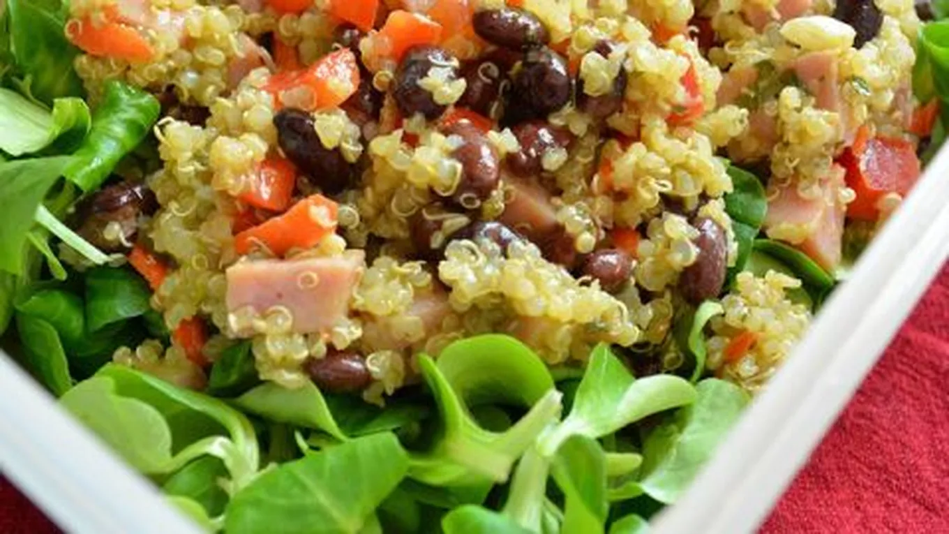 سلطة الكينوا مدة تجهيز المكوّنات 15 دقيقة مدة التحضير 20 دقيقة الكمية تكفي لـ 8 أشخاص السعرات الحرارية 278 سعرة حراريةالمكوّنات كوبان من الماء. مكعبان من مرق