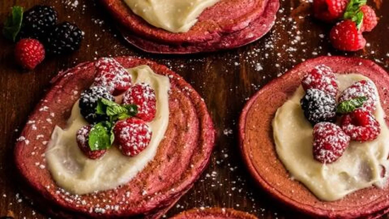 - نُضيف ملعقتين من الصبغة الحمراء، والبيكنج باودر، والحليب.