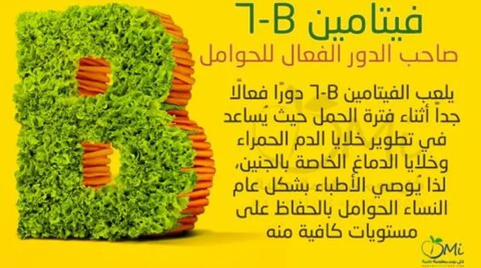 فيتامين ب 6 والمعروف أيضاً باسم فيتامين البيريدوكسين من الفيتامينات المهمّة لصحّة الحامل ولصحّة جنينها، حيث يُحفّز عمليّة الأيض ويُساعد على عمليّةِ هضم البروتين والدّهون والكربوهيدرات، كما أنّ له دوراً في تكوين خلايا الدّم الحمراء، والناقلات العصبية، والأجسام المُضادّة، وهو من الفيتامينات الأساسيّة لنمو الدماغ والجهاز العصبي للجنين.