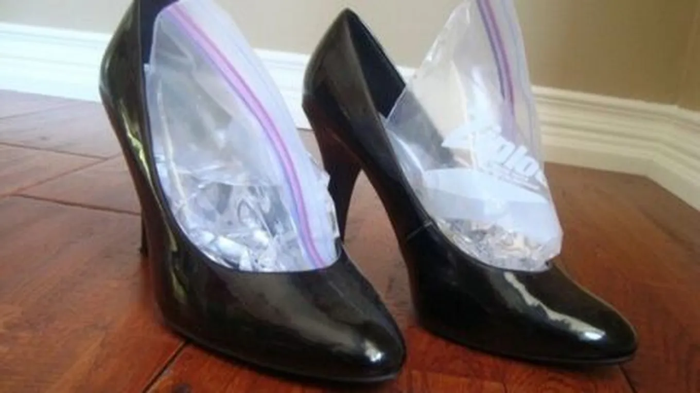 - الفريزر: نملأ كيساً بالماء، ونغلقه بإحكام، ثم نضعه في المقدمة الأمامية للحذاء، ثم نضع الحذاء داخل الفريزر، ونتركه قليلاً حتى يتحول الماء إلى ثلجٍ، ثم نخرجه، ونتركه ليذوب الثلج، ثم نخرجه من الحذاء.