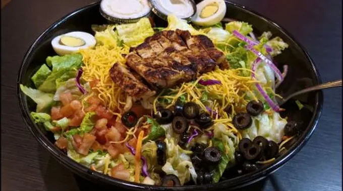 - نضع قطع الدجاج على وجه السلطة ونقدّمها.