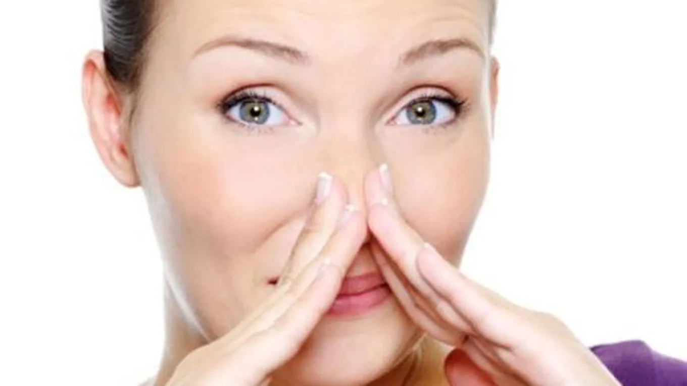 - ضعي أصبعيك السبابة على طرفي الأنف وقومي بعمليتي الشهيق والزفير بشكلٍ قوي.