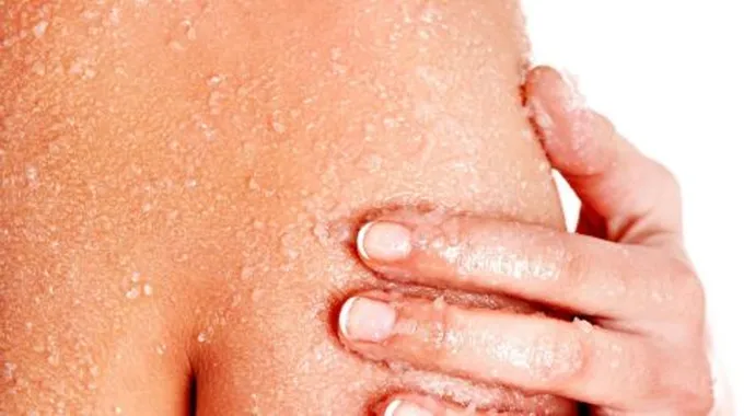 - يُغسل الجسم بمقشّرٍ مُرطّبٍ، وماءٍ فاترٍ.