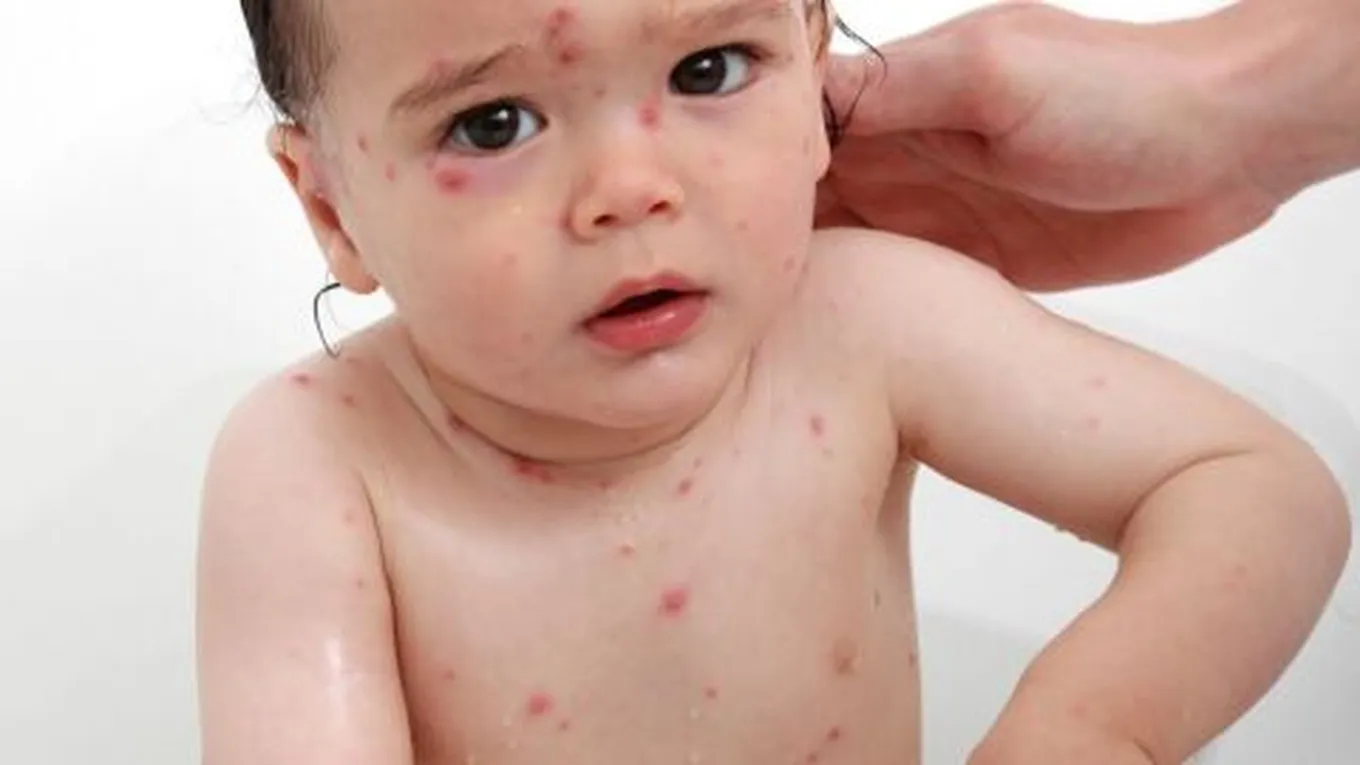 - طفح جلديّ على هيئة بقع حمراء مرتفعة عن مستوى الجلد، وهو يسبب الحكّة ثمّ يتطوّر ويُصبح نطفة وبثور تحتوي على السوائل، وإذا انفجرت أصبحت تقرحات مفتوحة ثمّ جلبات، ويبدأ الطفح الجلديّ بالظهور على البطن، والصدر، والظهر والوجه، ثمّ ينتشر إلى بقية أجزاء الجسم، مثل: الفم، والجفون والأعضاء التناسلية.