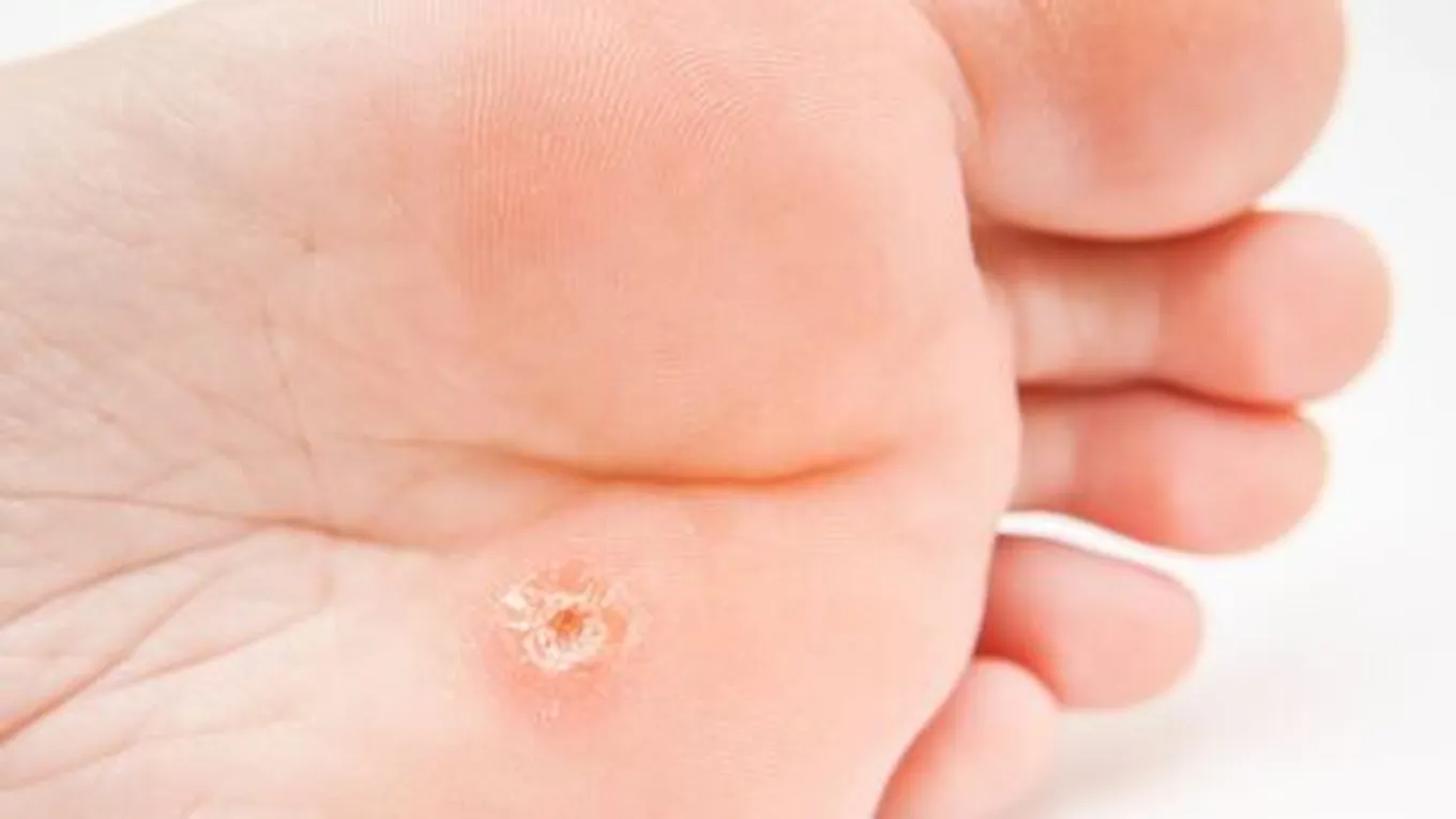 - ظهور آفات في أسفل القدم على شكل نمو لحمي، صغير، خشن، وقد تظهر هذه الآفات على قاعدة أصابع القدم.