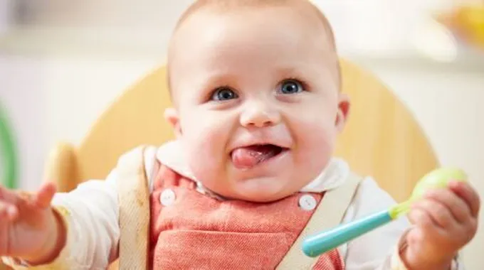 - قدرة الطفل على ابتلاع الأطعمة الطريّة عند وضعها في فمه.