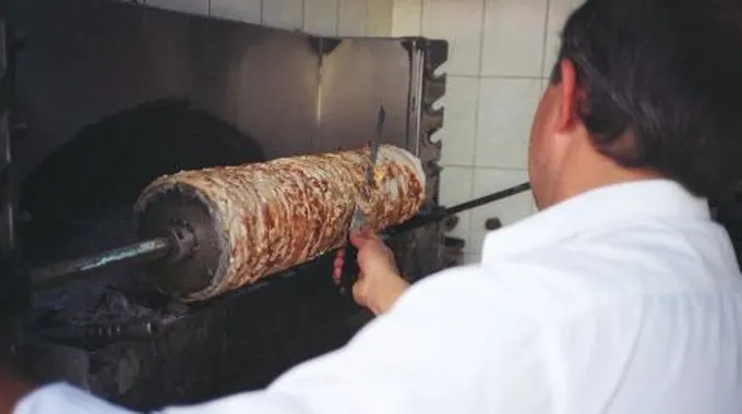 الشاورما أو الدونر كباب هي تركيّة الأصل تم إعدادها من قبل شخص تركي قام بوضع رقاقات اللّحم مرصوصة في سيخ معدني طويل مضيفاً إليها بهارات خاصة ، وتمّ تعريضها