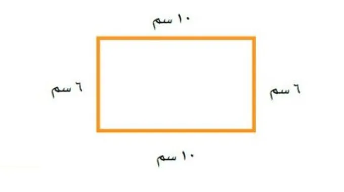- مثال (5): دخلت نملة غرفة نوم مستطيلة الشّكل ومشت حولها، وكان طول هذه الغرفة 10 أقدام، وعرضها 6 أقدام، جِد المسافة التي قطعتها النّملة.[7]