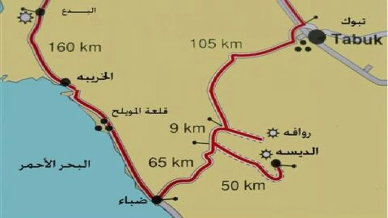 عند التّوجه من مركز تبوك إلى مدينة ضباء السّاحلية لا بد من قطع مسافة تقدر بمائة وتسعين كيلو مترًا، فضباء يحيط بها عدد من المحافظات التي تبعد عنها مسافة لا بأس بها، ومن هذه المحافظات محافظة الوجه ومحافظة البدع حيث تبعدان عن ضباء مسافة مائة وخمسين كيلو متراً، ومحافظة حقل تبعد عن ضباء مسافة مائتين وخمسين كيلو متراً، وتبعد عن محافظة أملج مسافة ثلاثمائة كيلو متراً.،