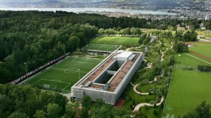 اكتمل بناء المقرّ الدائم للاتّحاد الدولي لكرة القدم (FIFA) عام 2006م؛ حيث احتاج لعامين حتّى يتمّ البناء، ويقع في المنطقة 7 (FIFA-Strasse 20) في زيوريخبيرغ، وتجد فيه ملعباً لكرة القدم، وغرف للتأمّل، ومقرّات لكافّة أنواع الرياضة، كما تجد مكاتب العاملين في الاتّحاد، وقد كانت تكلفة بنائه عالية؛ حيث بلغت التكلفة الإجماليّة 240 مليون فرنك سويسري، وهو كما يسمّى بيت الفيفا أقرب ما يكون للبيت البيئي بجدارنه الزجاجيّة وشرائط الألمنيوم، وحتّى جدرانه المائلة، ومعظم ما في بيت الفيفا أشياء يدويّة ومتقنة الصنع؛ فهو يميل إلى البساطة الفخمة، وتحيط بالمنزل الكبير أحراش من كلّ الجهات؛ حيث رسّخ فكرة الحفاظ على البيئة والبساطة.