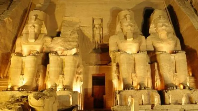 يضمّ معبد أبو سمبل اثنين من المعابد الصخرية الضخمة، والتي هي منحوتة منذ القرن الثالث عشر قبل الميلاد في الجبال، أي منذ عهد الملك الفرعونيّ رمسيس الثّاني، وتشكّل نصباً له وأيضاً للملكة نفرتاري، لقد بدأ ببناء مجمع معبد أبو سمبل في عام 1244 ق. م، ودام العمل على إتمام بنائه ما يقارب واحد وعشرين سنة، وقد عرف هذا المعبد قديماً باسم معبد رمسيس، والذي كان محبوباً من قبل آمون، وكان ذكر النصب احتفالاً بذكر معركة قادش التي انتصر فيها، إضافة لتعزيز صورة مصر وقوّة ملكها من للدول المجاورة، وأيضاً من أجل تعزيز الدين المصريّ في كافّة المنطقة، ويتشكّل المعبد من ستّة صخور في منطقة النوبة، ويحوي مدخل المعبد أربعة تماثيل لرمسيس، وأربعة أيضاً لنفرتاري.[2]