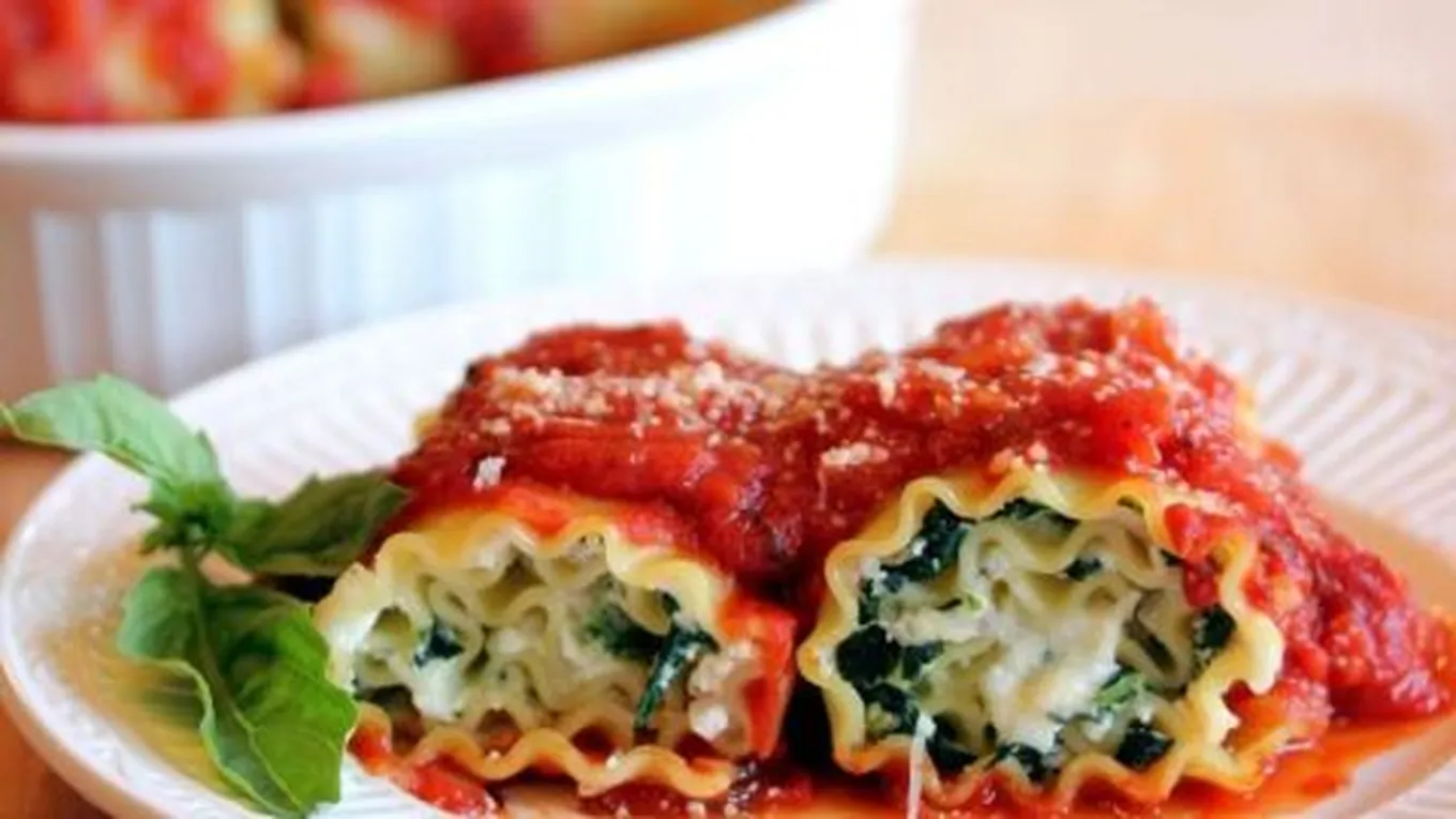 - افردي شريحة اللازانيا، وضعي ملعقة كبيرة من خليط السبانخ والجبنة، ورشة من جبنة البارميزان، ثمّ ضعي فوقها ملعقة كبيرة من خليط اللحم، ولفّيها كالأصابع حتى انتهاء كلّ كمية الشرائح.